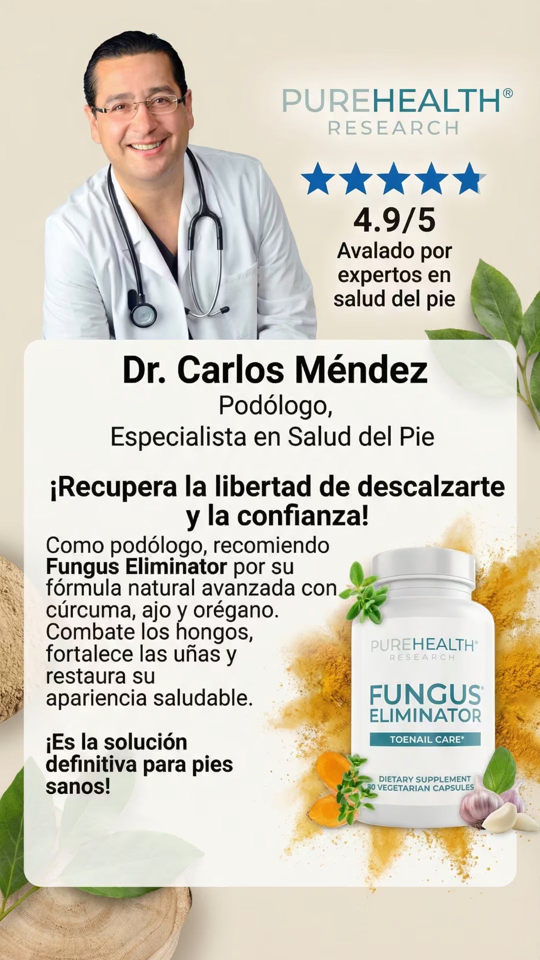 Clear Nails es un tratamiento oral avanzado que combate los hongos de las uñas desde el interior. Su potente mezcla natural de Cúrcuma, Orégano y Ajo elimina la infección de raíz, restaura el color saludable y fortalece la uña, permitiéndote recuperar la estética de tus pies y tu confianza personal.